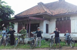 Tidak jauh dari Pasar Haurgeulis, saya melihat rumah panggung tua dengan bentuk unik terbuat dari bilah-bilah papan. Saya yang selalu tergoda untuk memotret bangunan tua, berinisiatif untuk mengabadikannya dengan berfoto bersama peserta ngonthel di halaman rumah tua milik Perhutani Kabupaten Indramayu tersebut. Ketika foto tersebut saya edit dengan memakai aplikasi di dalam handphone, foto itu menghasilkan efek suasana tempo doeloe.
